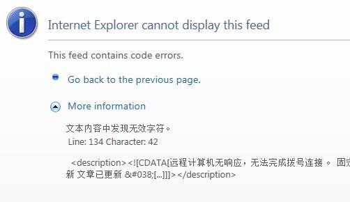 feed出现错误“XML parsing error: not well-formed”的一种情况