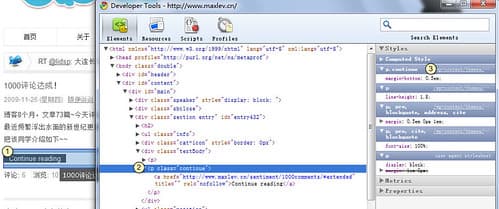 我的主页中文章下面的 continue 为例~~右键点击continue,审查元素,之后会出现以下对话框: